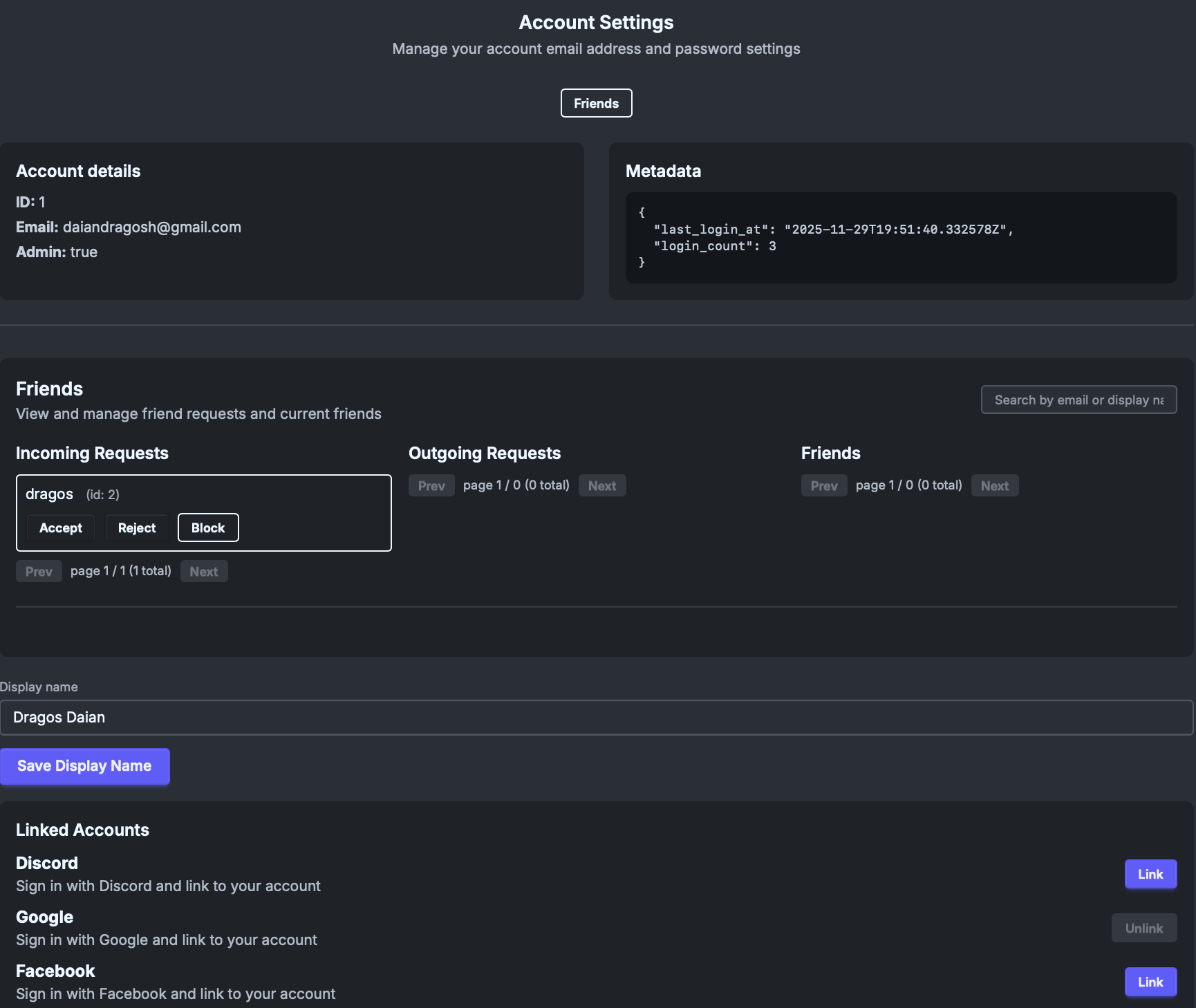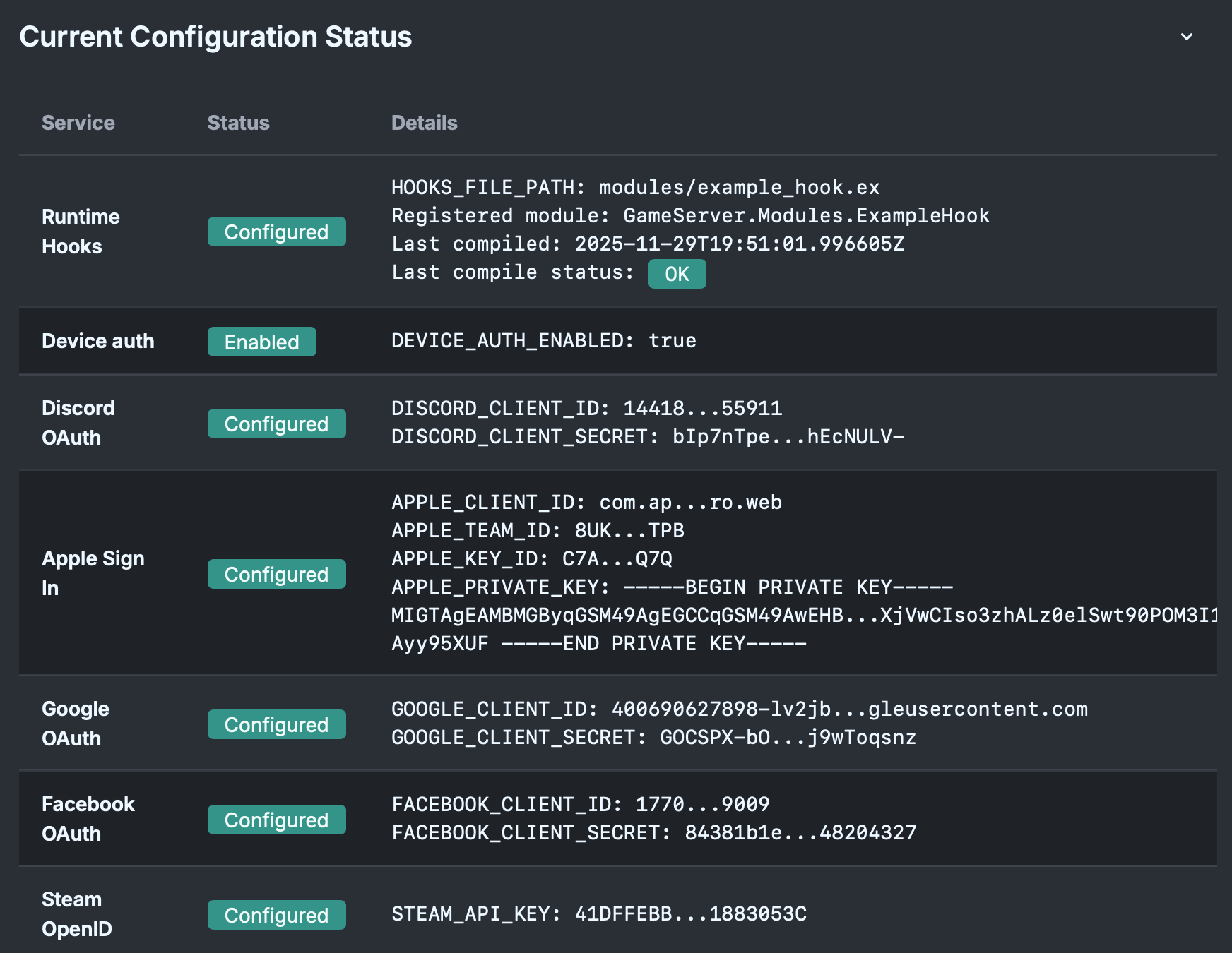 - OAuth 2.0 / OIDC providers (Steam, Google, Discord, Facebook, Apple)