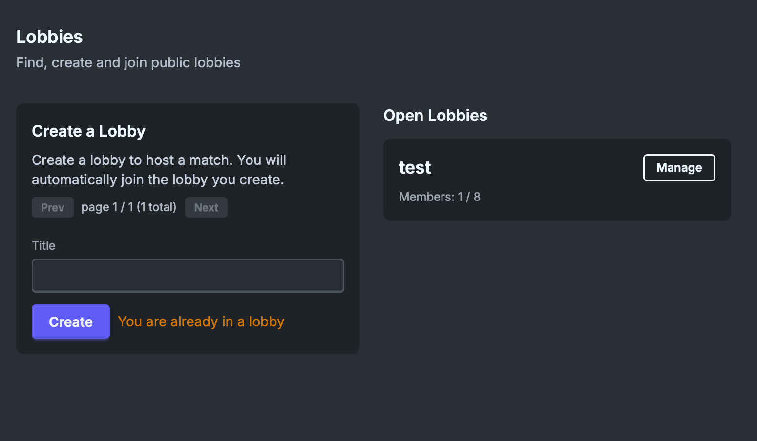 b. Realtime lobby system via Phoenix Channels and Presence: