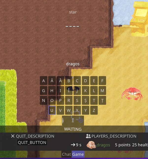 Guess letter by letter from base language to target language. You can make mistakes, but if you make too many, you will have to wait until you can guess again. Every word you complete moves the ship or attacks in the game: